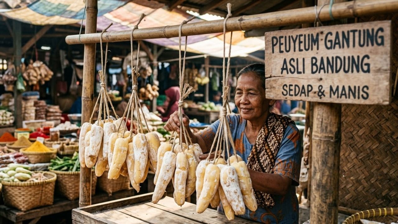 Aroma fermentasinya juga cukup khas. Warna peuyeum umumnya putih kekuningan dan sering dijual dalam bentuk digantung, sehingga mudah dikenali oleh pembeli.