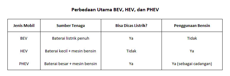 Kalau ingin bebas emisi, BEV adalah jawabannya. Kalau mau irit tapi praktis, HEV lebih cocok. Sedangkan PHEV pas buat kamu yang ingin fleksibilitas maksimal.